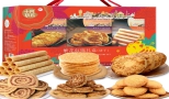 鲍鱼酥108g,迷你合桃酥108g,咸切酥100g,椰蓉酥78g,奶油小蛋卷60g,芝麻饼62g