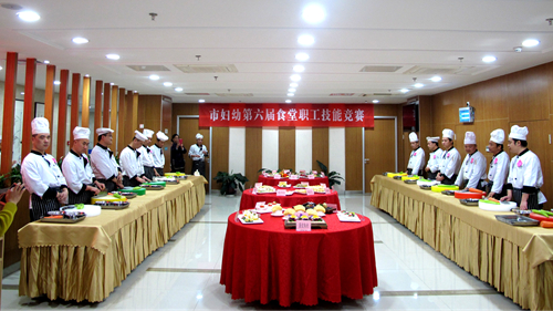 为进一步提高食堂厨师的业务知识和操作技能,促进员工之间的交流和学习,提高食堂整体服务质量水准,12月8日下午,市妇幼第六届食堂职工技能竞赛在职工餐厅四楼拉开帷幕,食堂全体厨师参加了比赛,本次比赛邀请了各分工会主席、膳管会委员以及专业的酒店厨师长等担任评委。