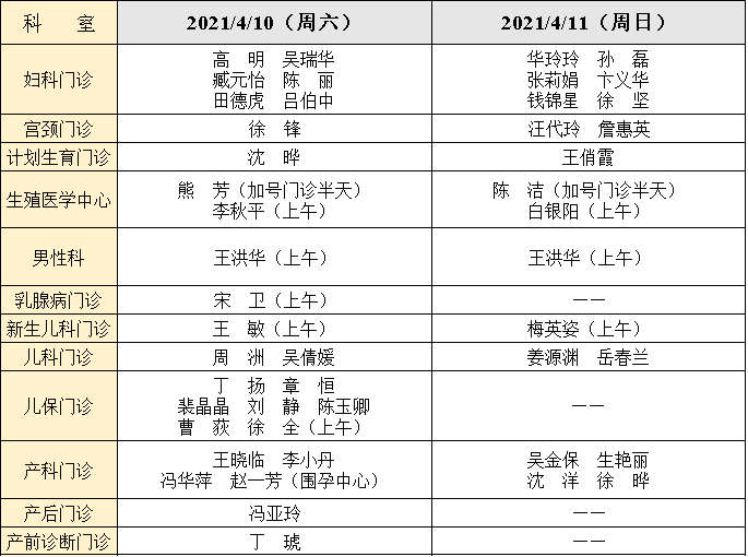 本周10日、11日门诊专家如下,